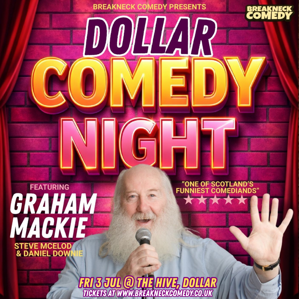 Graham’s claim to fame is that he has gotten himself into the final of the “Scottish Comedian of The Year” competition FOUR times!