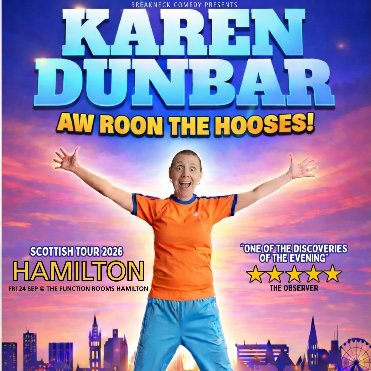 Karen has trod the boards in everything from Glasgow Panto to West End Classics, performed Burns, Shakespeare, done stand up and DJ-ed in New York and Ibiza, and in 2014 she opened the Commonwealth Games in front of one billion viewers. From Oran Mor to the National Theatre, Karen has captivated audiences with mix of comedy, music and acting talents and last year she toured Scotland playing 80 dates around the whole country and filmed this for BBC.